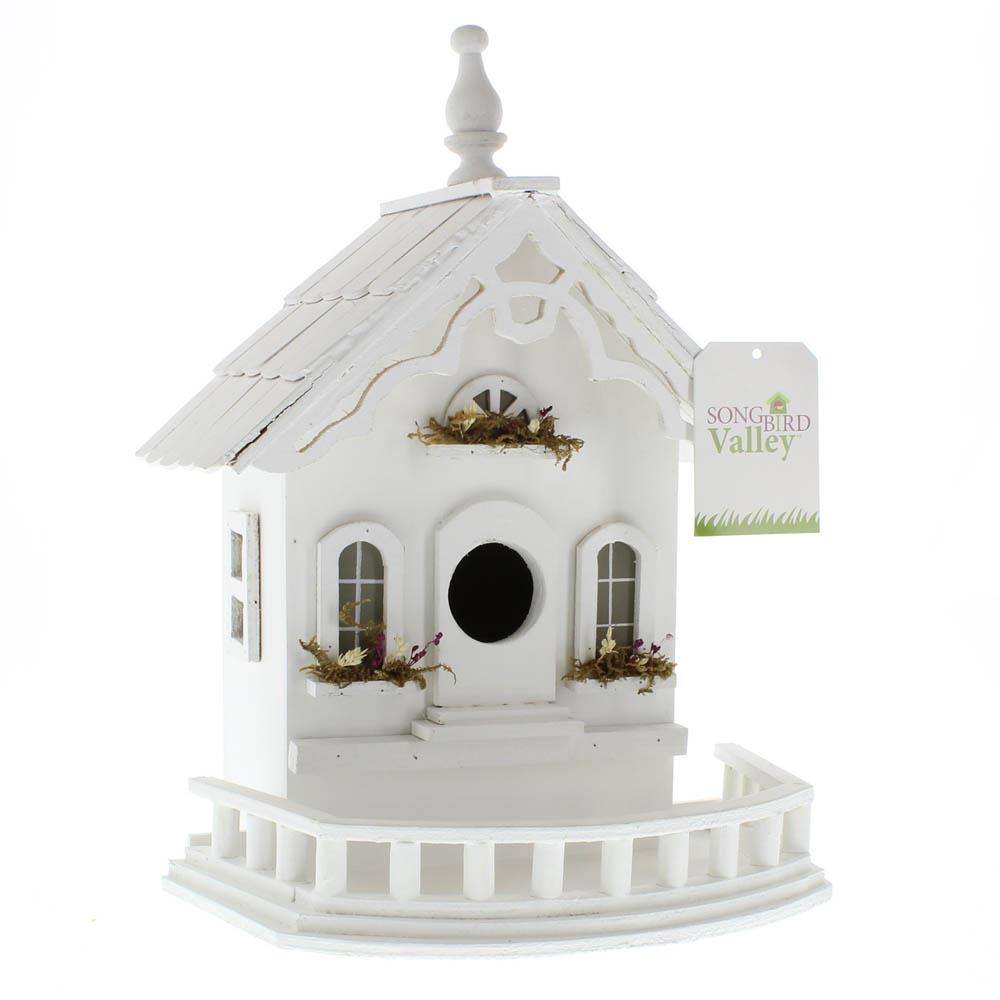 This White Shabby Victorian Birdhouse is a charming addition to any garden or backyard. Handcrafted with intricate details, this vintage-inspired birdhouse features a distressed white finish that adds a touch of shabby chic style. Perfect for attracting birds to your outdoor space, this birdhouse is sure to be a focal point in your garden. Add a touch of Victorian charm to your outdoor decor with this beautiful birdhouse.