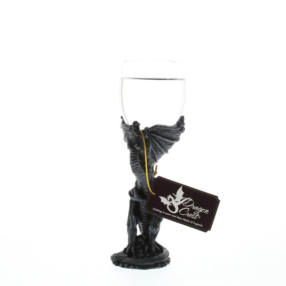 • An imposing roaring dragon forms a majestic base for a clear glass globe as this medieval-style goblet looks as impressive in your hand as it does at the banquet table! Decorative purposes only. Hand wash only.