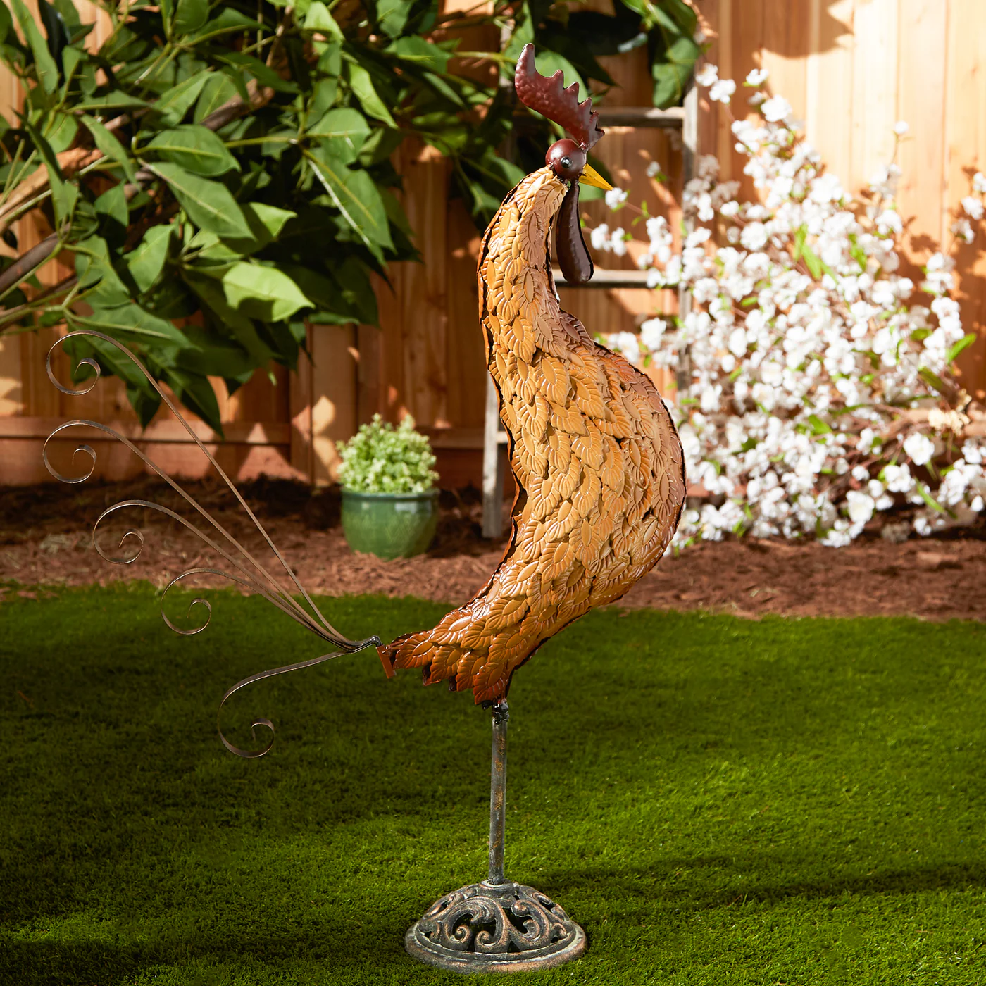 Elevate your outdoor space with a stunning Metal Sculpture Rooster. Handcrafted from durable metal, this eye-catching piece adds a touch of whimsy and charm to your garden or patio. Perfect for adding a unique focal point to your outdoor decor, this rooster sculpture is sure to impress guests and visitors. Made with high-quality materials, this metal sculpture is built to last and withstand the elements. Shop now to bring a touch of rustic elegance to your outdoor space with a Metal Sculpture Rooster.