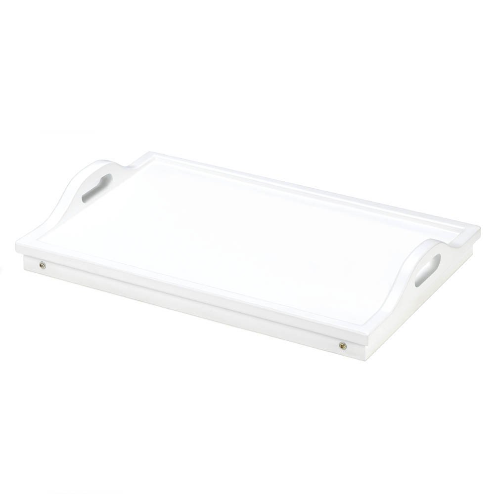 • Bring a meal to the table, or deliver a meal anywhere in your home with this fantastic white folding tray. You'll love serving breakfast in bed, or fold the legs away and serve snacks at your next party!