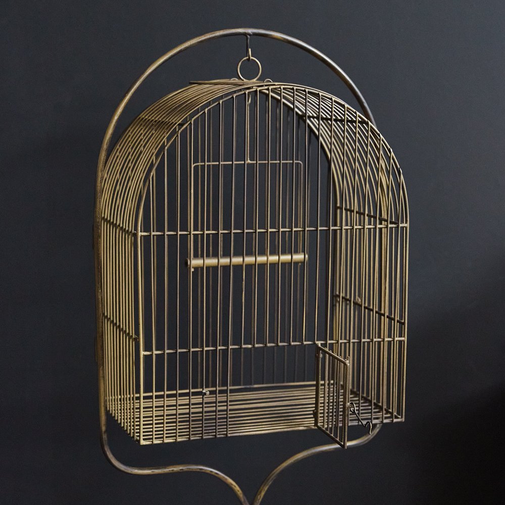 Home > Antique Brass Birdcage with Stand