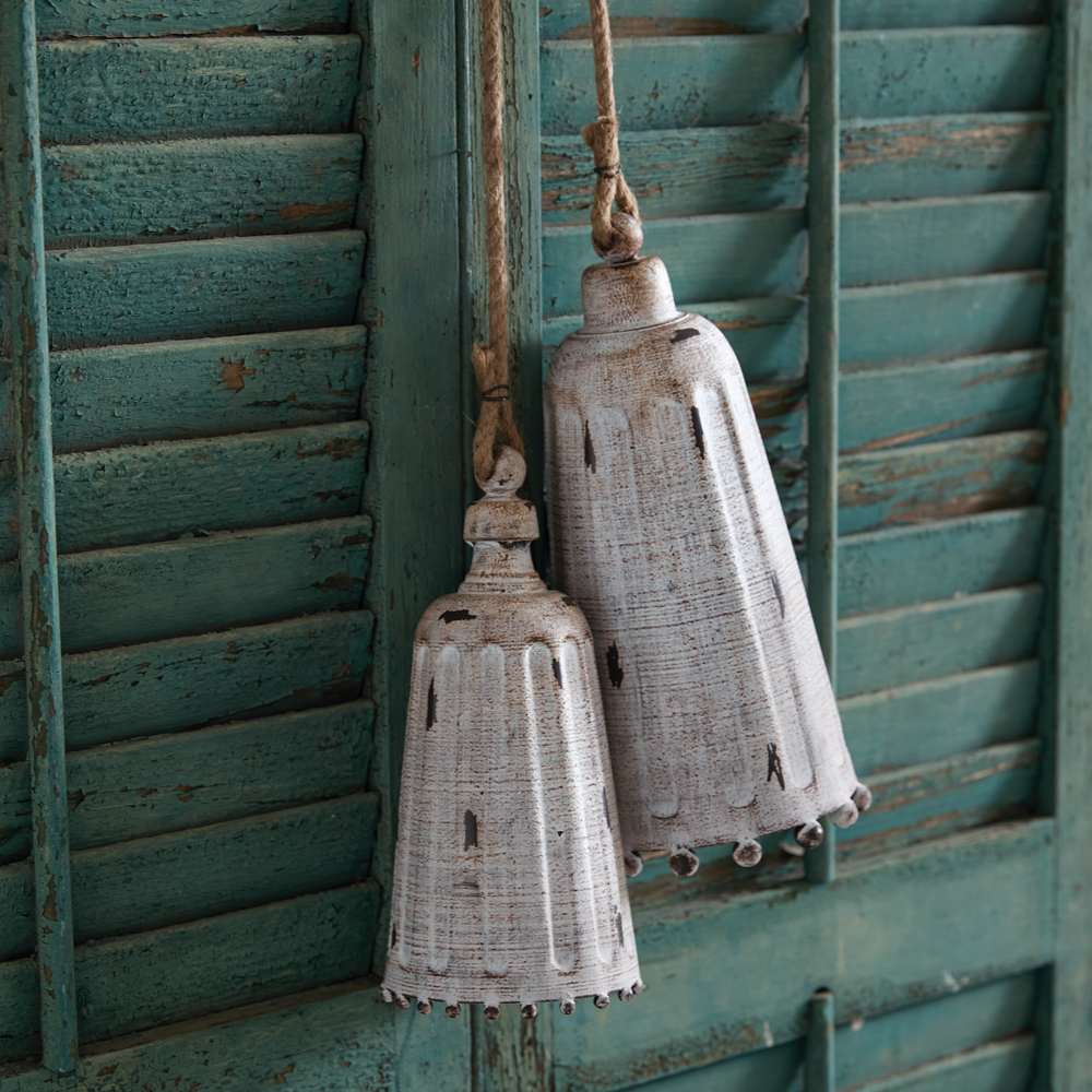 Home > Set of Two Whitewashed Metal Bells