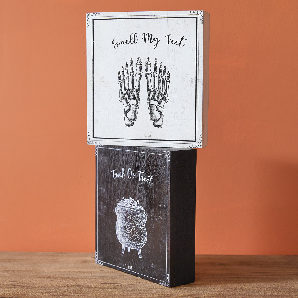 Set of Trick-or-Treat Smell My Feet Wood Box Signs