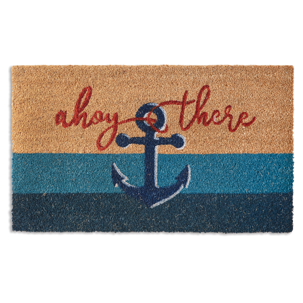 Welcome guests in style with the Ahoy There Nautical Doormat. This charming and durable doormat features a classic nautical design, perfect for adding a touch of seaside charm to your entryway. Made from high-quality materials, this doormat is built to withstand heavy foot traffic and outdoor elements. Say "ahoy" to your guests with this stylish and functional doormat that is sure to make a splash.